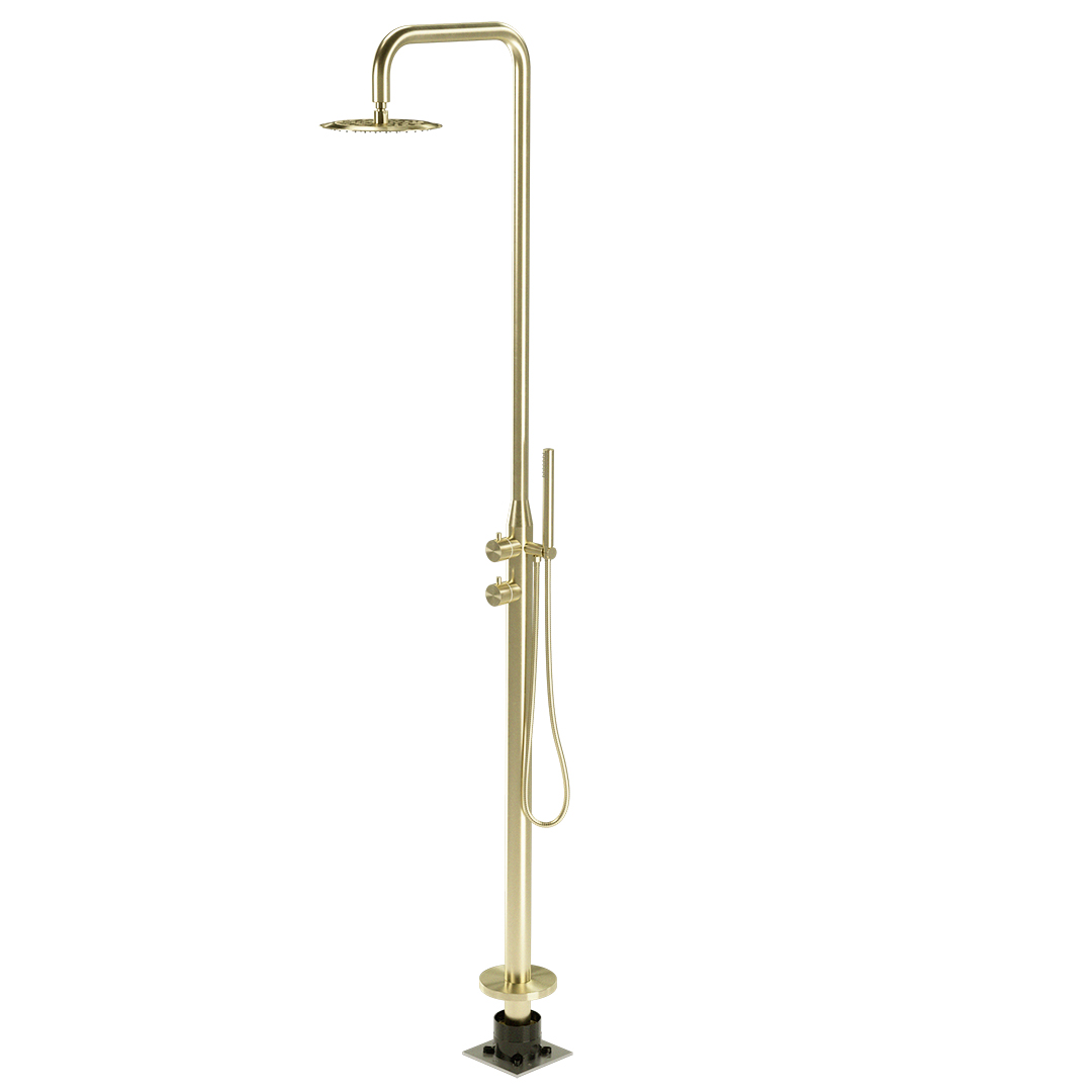 Sola Freestanding Outdoor Shower Set – Brushed Brass